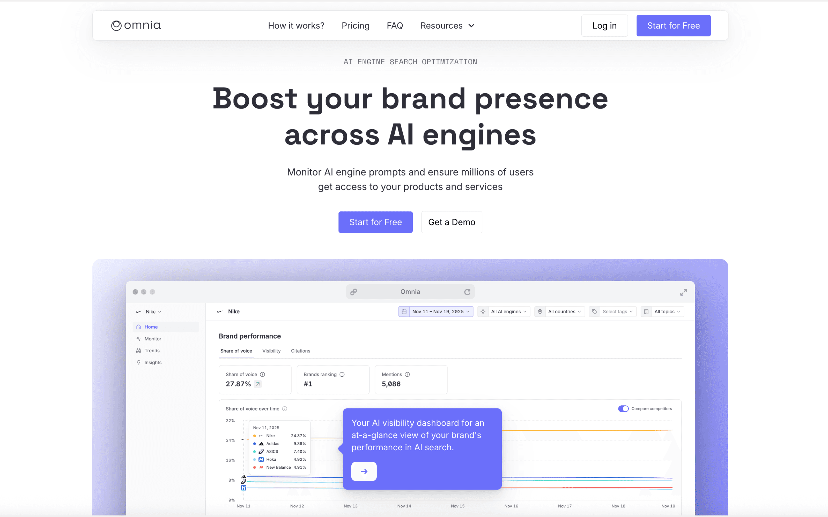Omnia | AI visibility tracking across AI engines with citations + competitor benchmarking | AI visibility tracking | 5 out of 5 | €79 per month |