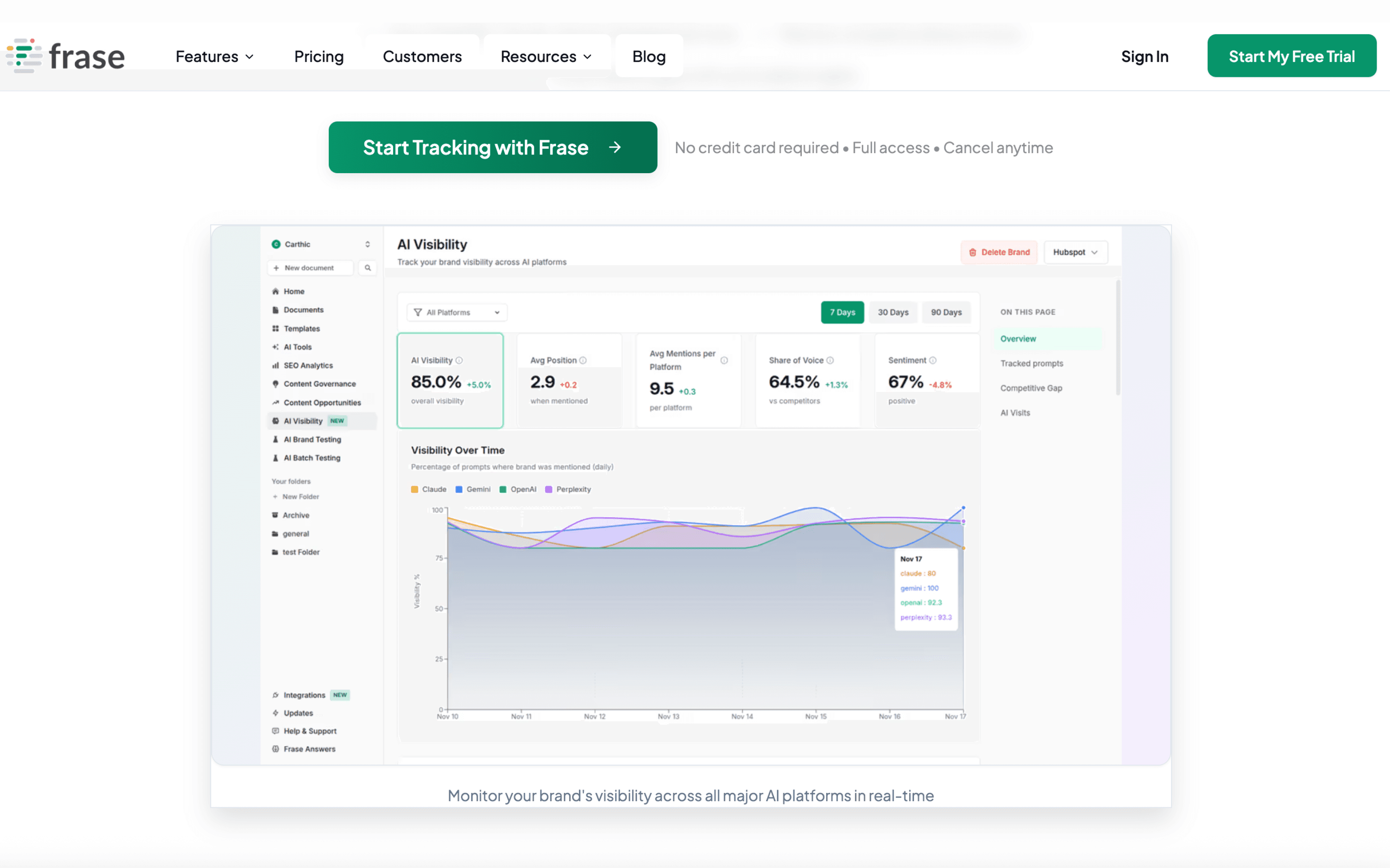 Best for: Teams that want deeper, enterprise-style AI visibility intelligence and reporting