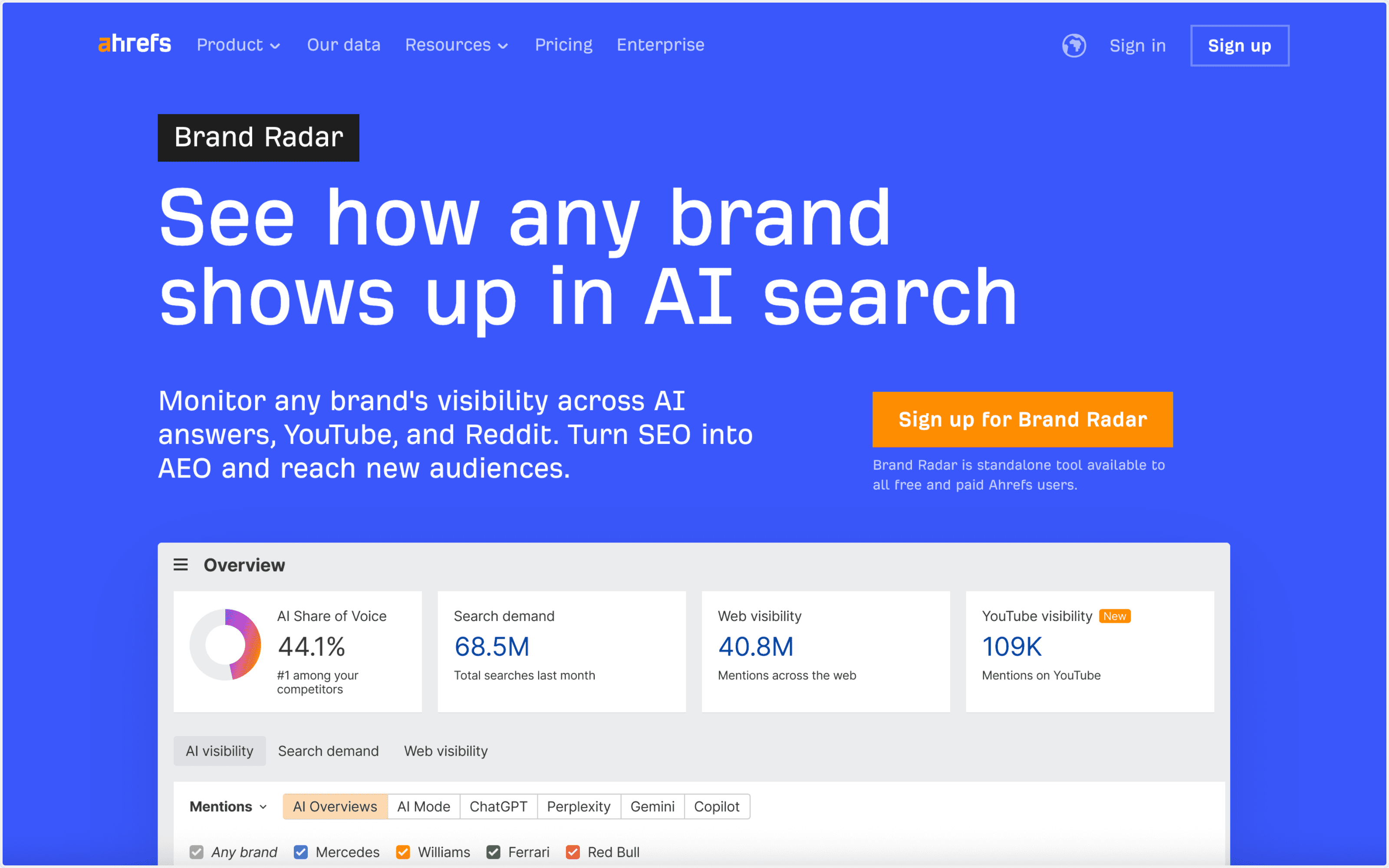 Ahrefs | Authority and competitor research that supports being cited | SEO suite + competitive research | 4.5 out of 5 | $129 per month |