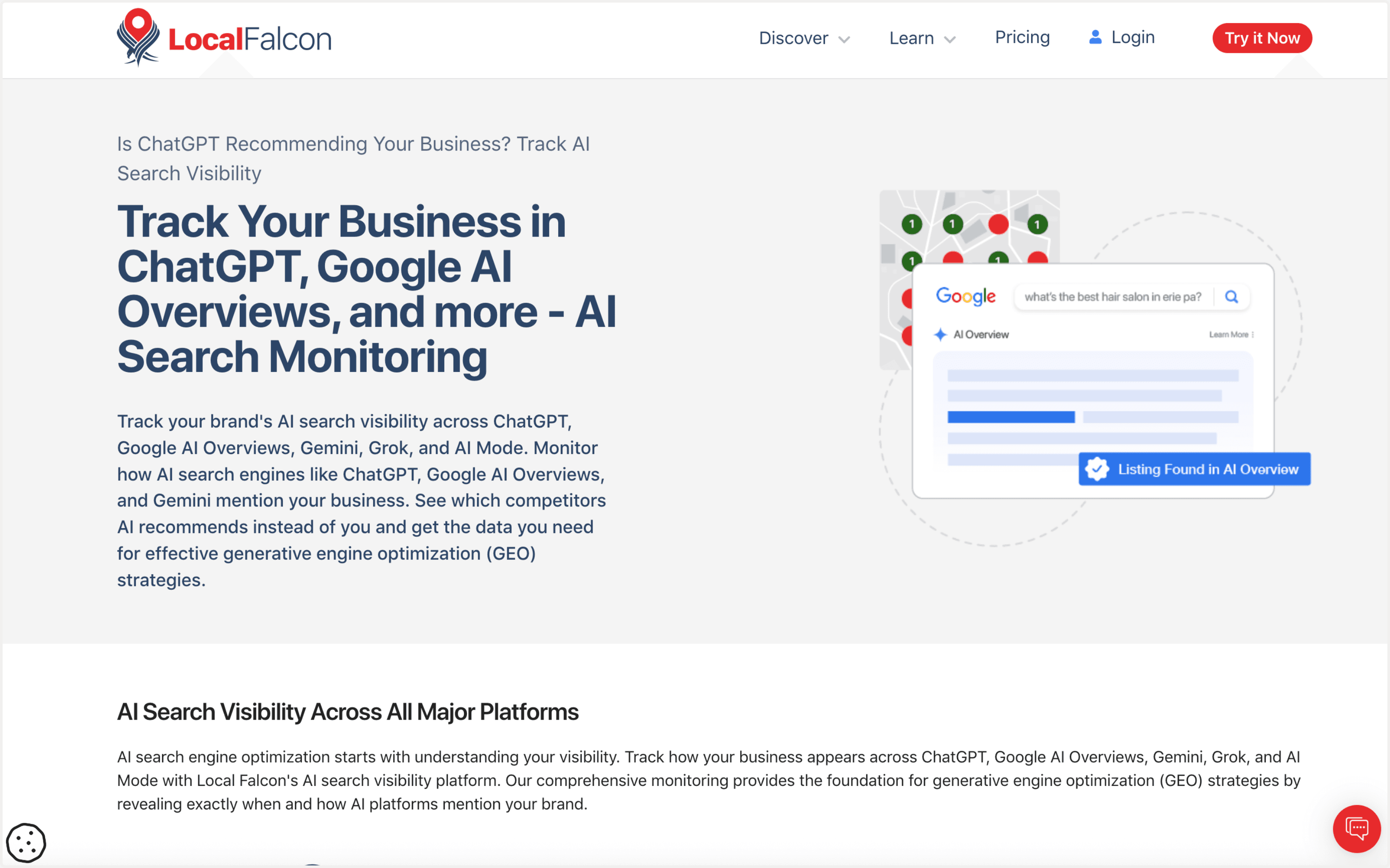 Narrow scope, focused on local rankings rather than broader AI answer visibility